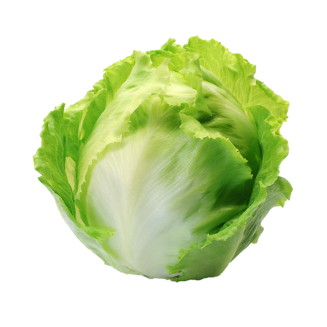 A fresh whole iceberg lettuce — crisp and refreshing in salads, burgers, and wraps.
