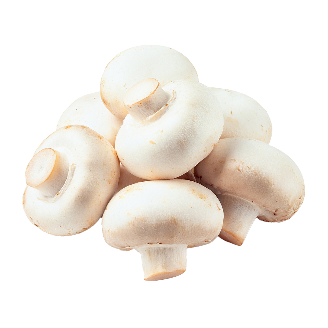Fresh white button mushrooms — a kitchen staple for soups, stir-fries, omelettes, and pasta.